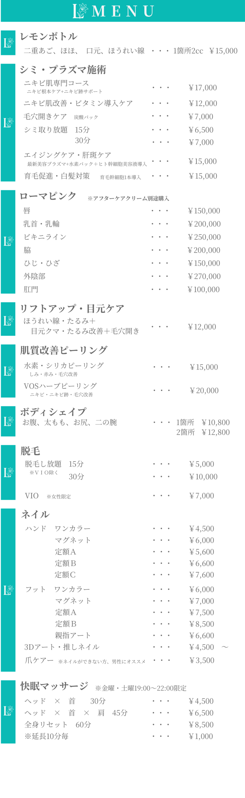 エステ・まつ毛・眉毛・ネイルまで、Lilyでは美しさをトータルでサポート。